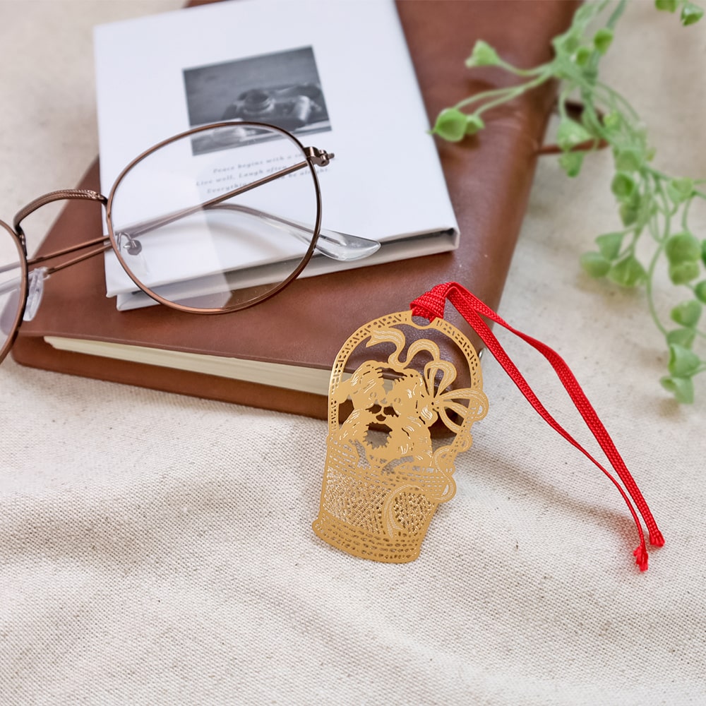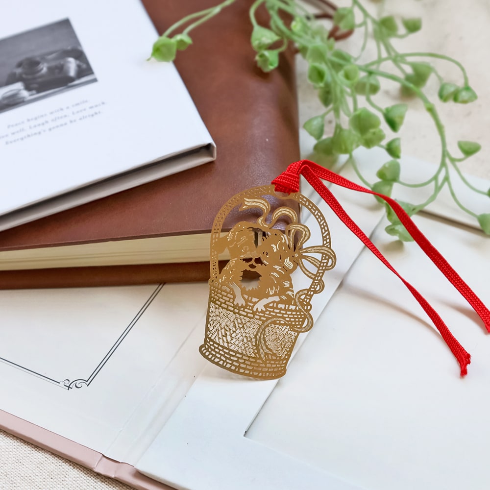 繊細なデザインとゴールドの輝きが美しいしおりです。