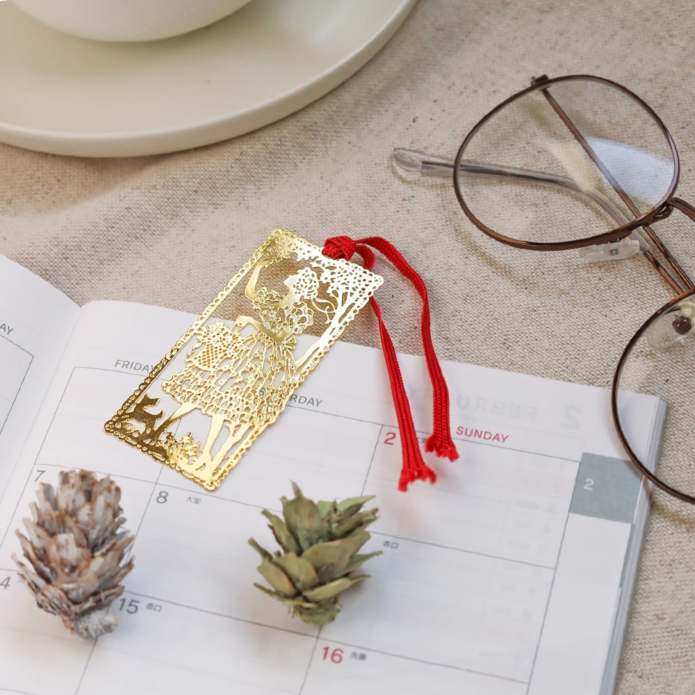 繊細なデザインとゴールドの輝きが美しいしおりです。