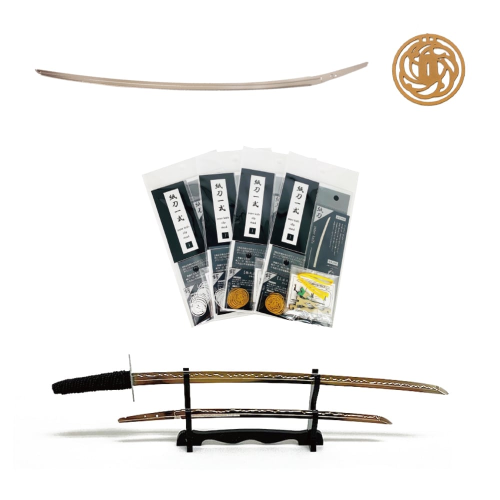 日本伝統芸術の一つである日本刀を精巧に再現したペーパーナイフと クリップ・刀掛け台がセットになった紙刀一式シリーズです。