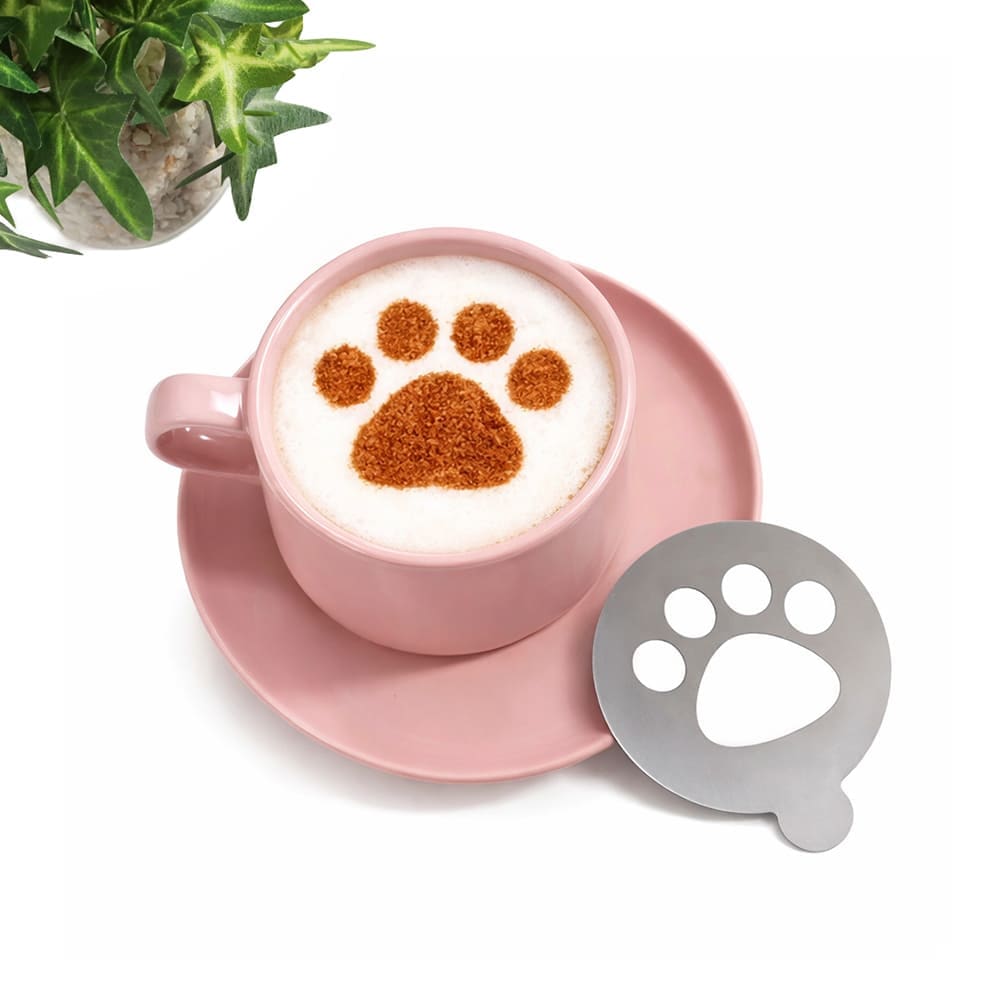 コーヒーにステンシルを配置し、パウダーを振り掛けるだけで